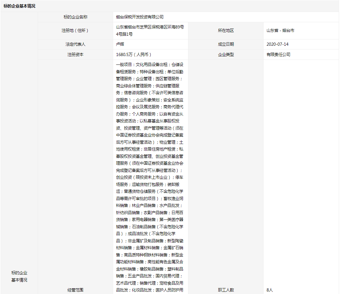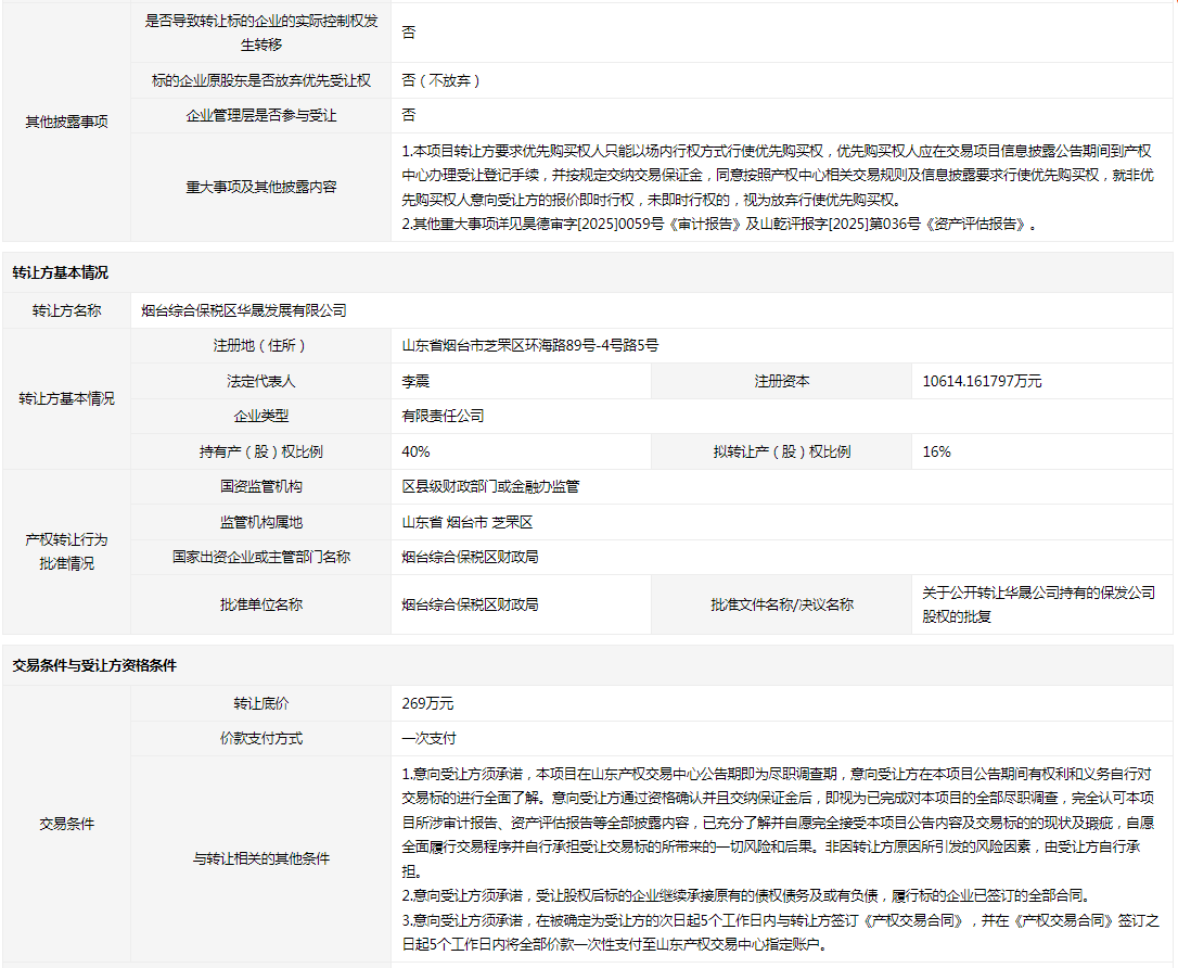 煙臺(tái)保稅開(kāi)發(fā)投資有限公司16%國(guó)有股權(quán)