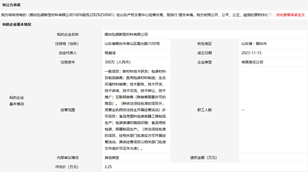 煙臺弘順新型材料有限公司100%股權(quán)