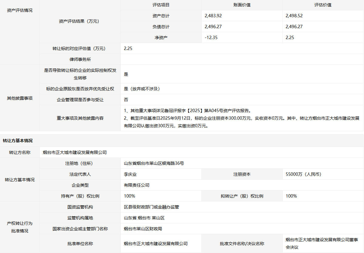 轉(zhuǎn)讓方:煙臺市正大城市建設(shè)發(fā)展有限公司