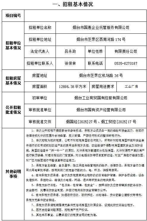 煙臺市芝罘區(qū)機場路223號房地產招租公告